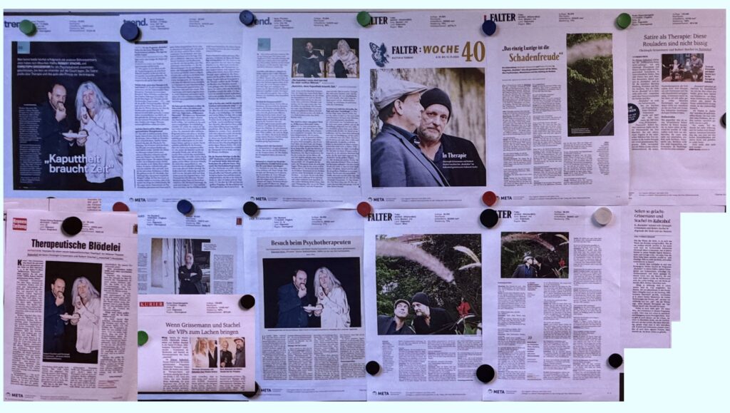 - „Christoph Grissemann und Robert Stachel gehen zum Psychotherapeuten“ (Der Standard)